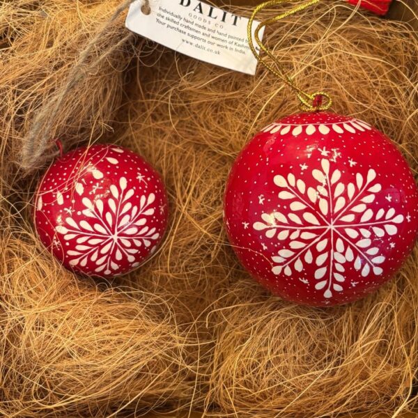 Red Snowflake – 2″ Bauble | Hand-Painted Hanging Christmas Decoration